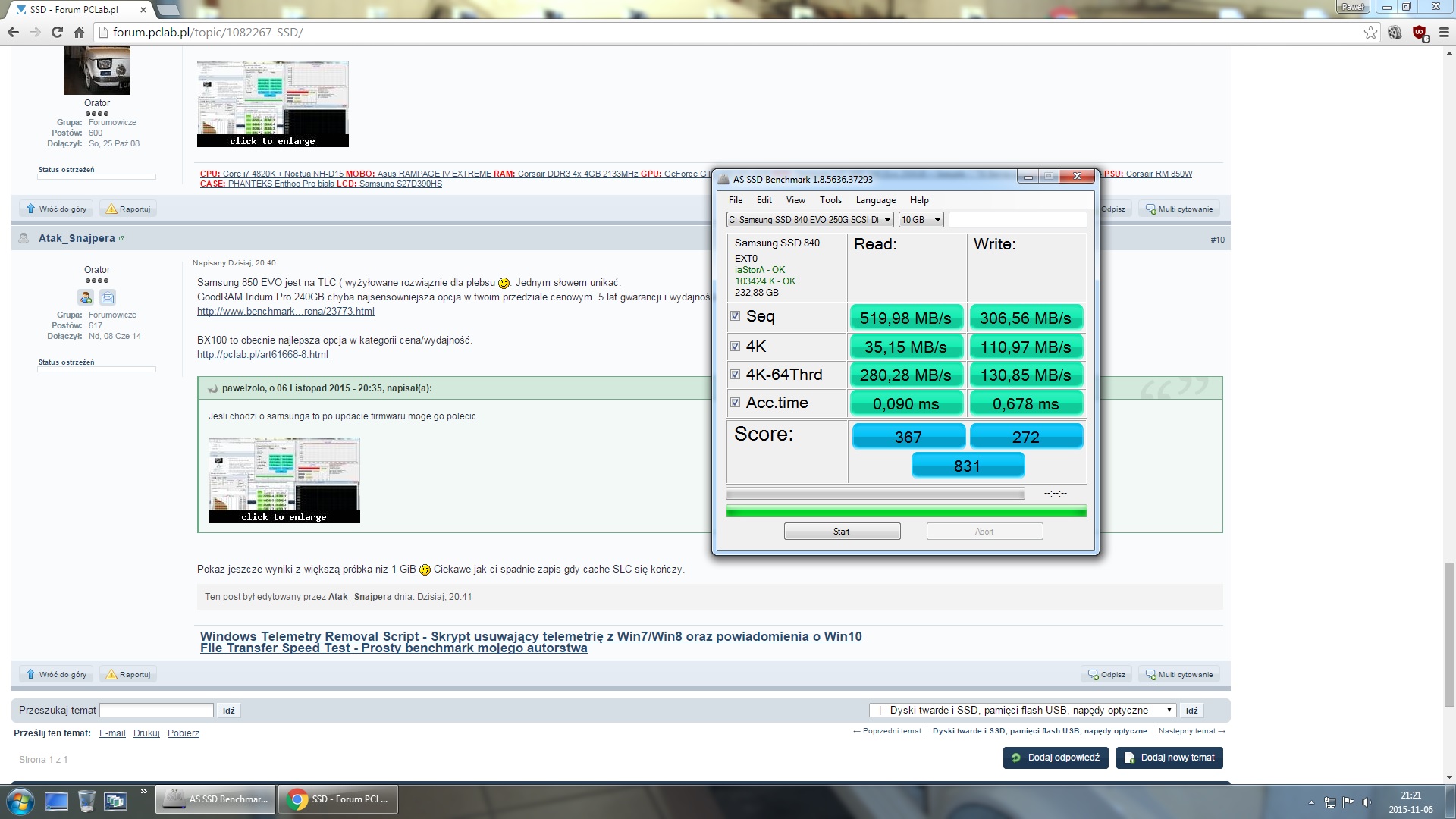 Jak chodzi o testy, to tu 500GB 850 EVO: