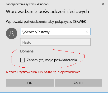 Windows - Logowanie do udziału vs zablokowanie zapamiętywania hasła