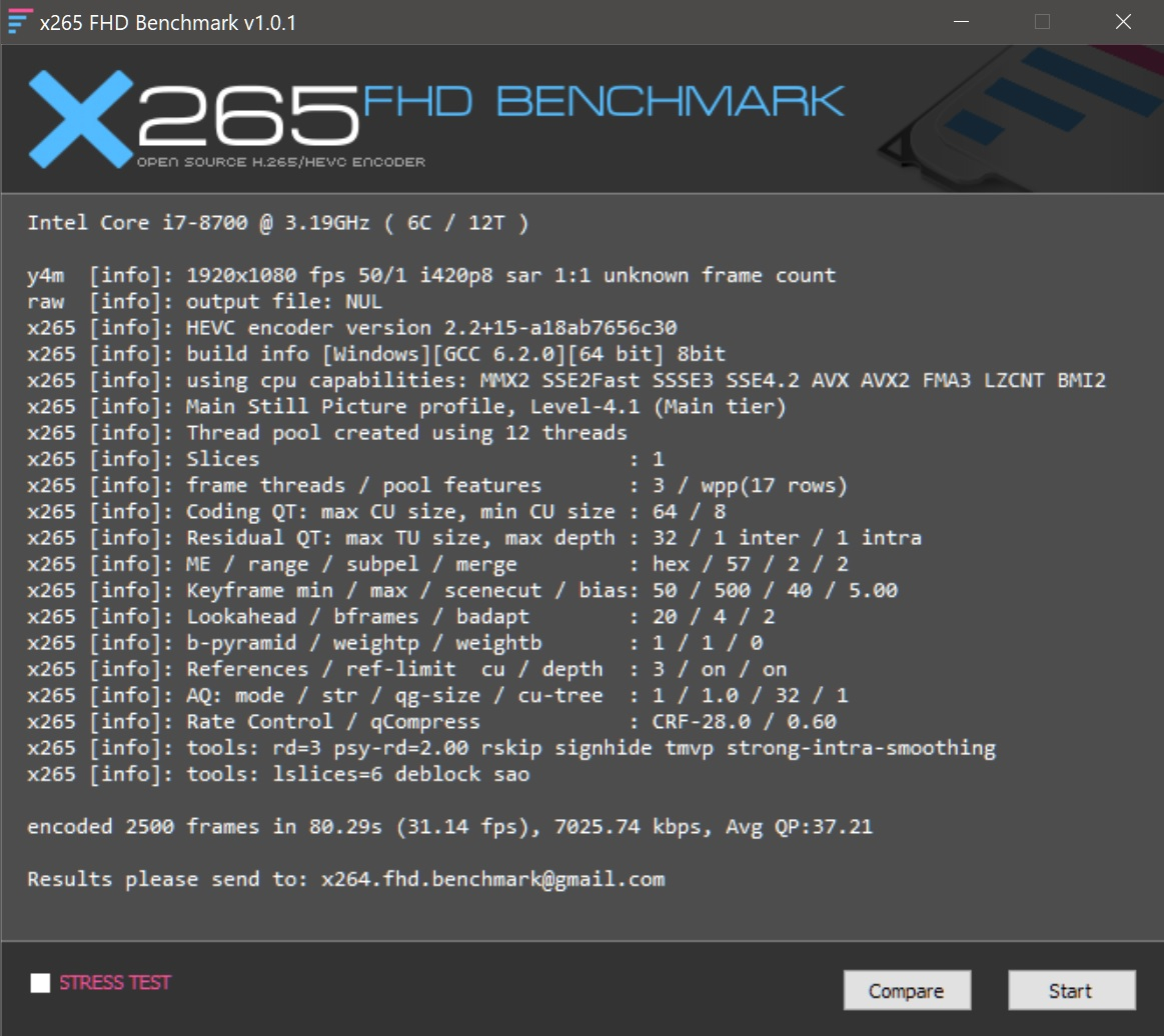 encoded 2500 frames in 60.48s (41.33 fps), 7025.74 kbps, Avg QP:37.21