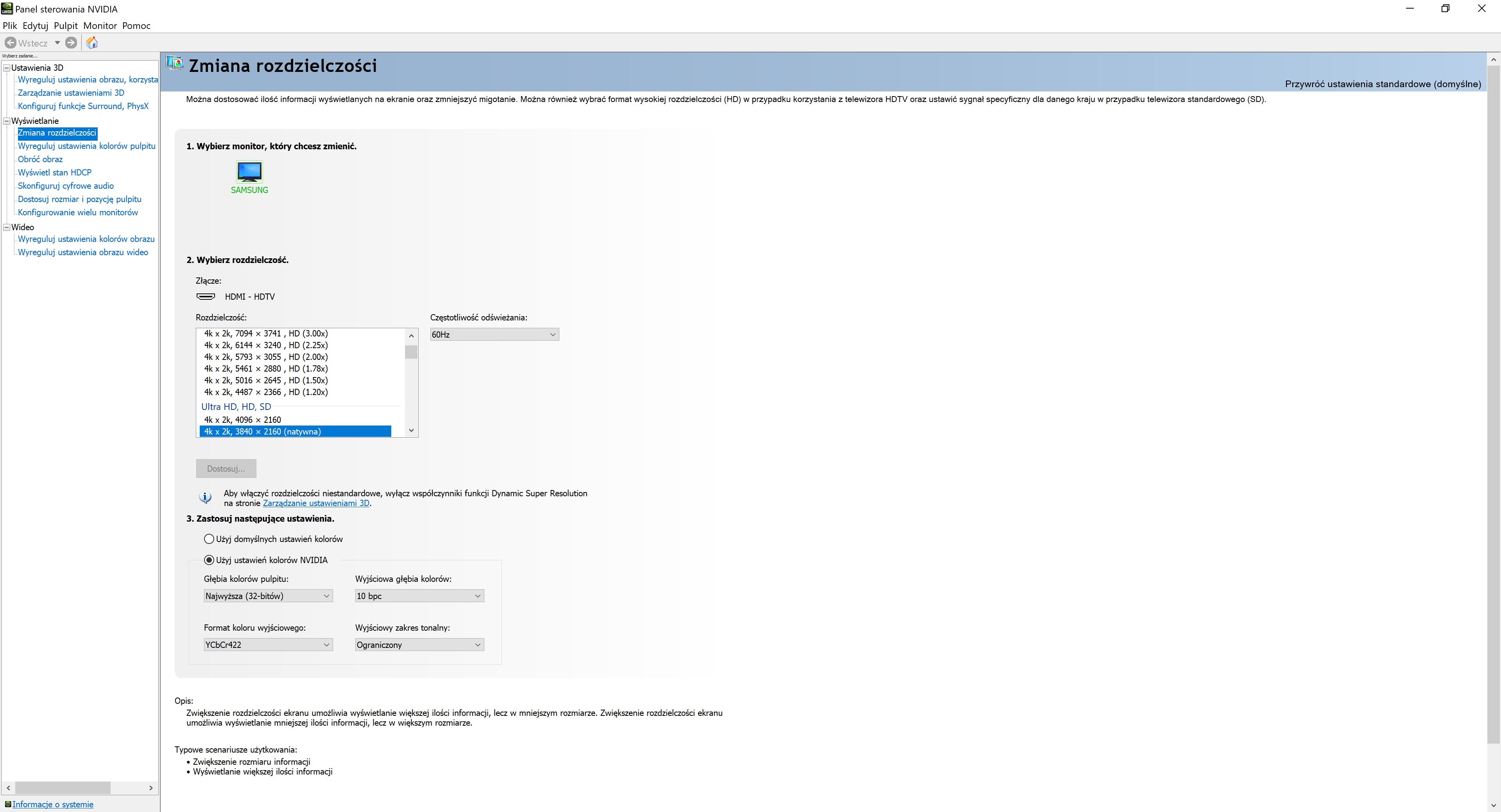 Dokładnie, a ta opcja która jest dostępna w opcjach, to sztuczne podbicie jasności, która robi więcej szkód niż pożytku. Niech jeszcze sprawdzi, czy w menadżerze urządzeń zewnętrznych, ma ustawione "HDMI UHD Color" na źródle HDMI pod którym ma podpietego kompa.