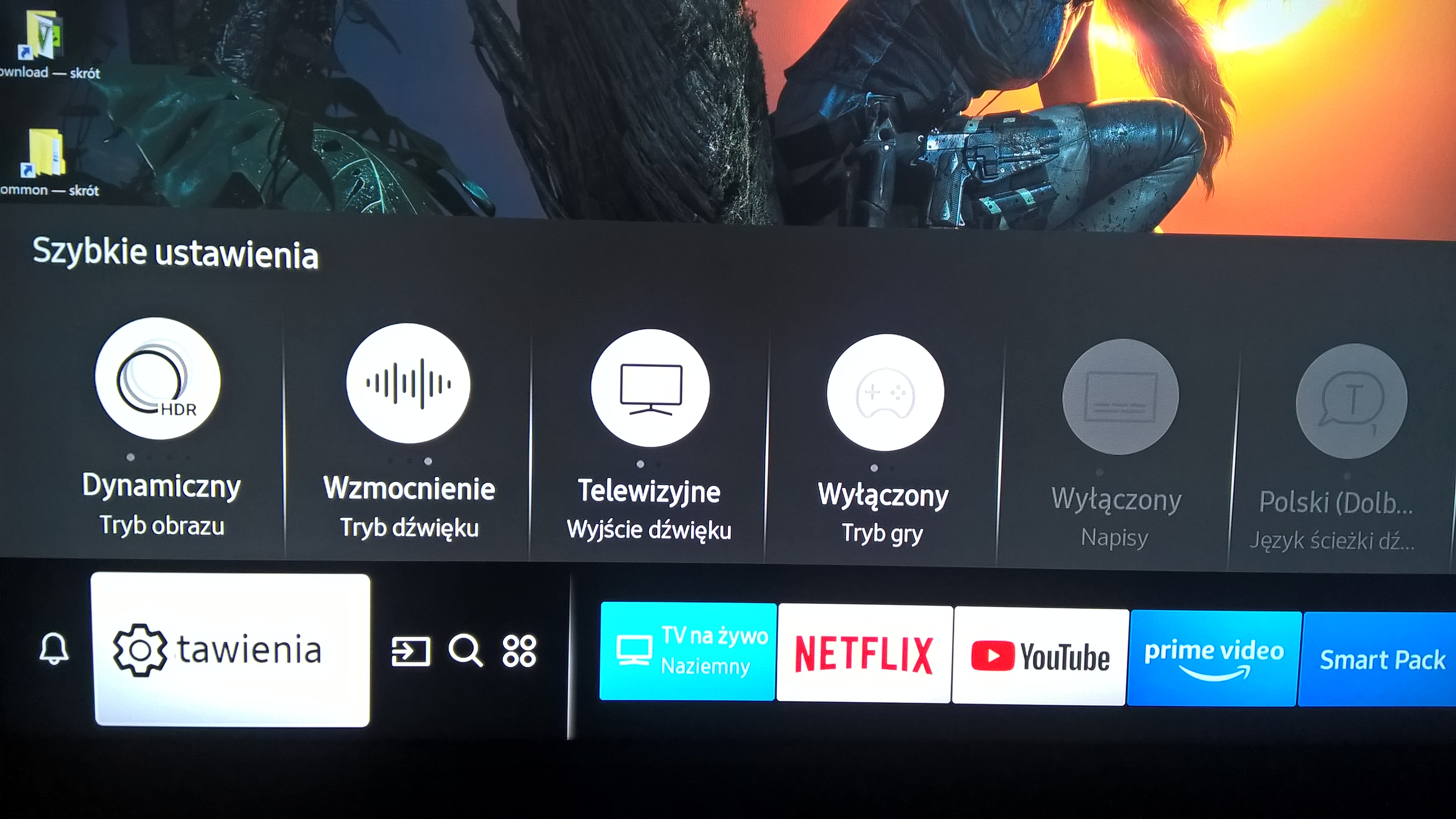 Nie znam twojego modelu TV, ale wszystkie lepsze samsungi mają 3 poziomy dynamicznego kontrastu, jest to tryb specjalnie przystosowany do HDR, jak masz to ustaw sobie na średni i odpowiednio skalibruj w ustawieniach gry HDR, będziesz miał efekt jak na tym filmiku + po odpowiedniej kalibracji znacznie więcej widocznych detali w bielach i przejściach tonalnych, lepszy kontrast itd.