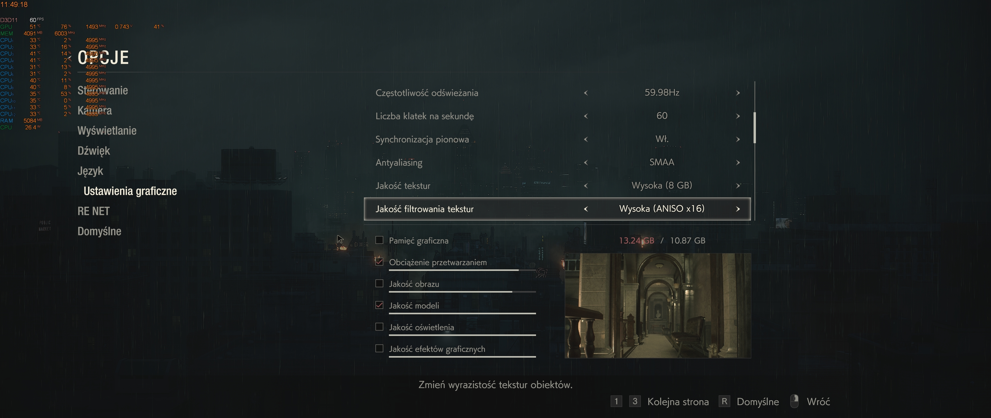 Przy smaa dalej strasznie wszystko miga i to również w 4k, a co mówić o niższych rozdzielczościach. Niestety taki silnik, ja pewnie będę grał w takich samych ustawieniach jak w RE7 grałem czyli TAA+FXAA, dam reshade lub jak będę grał z HDR to na TV lekko podkręce obraz.