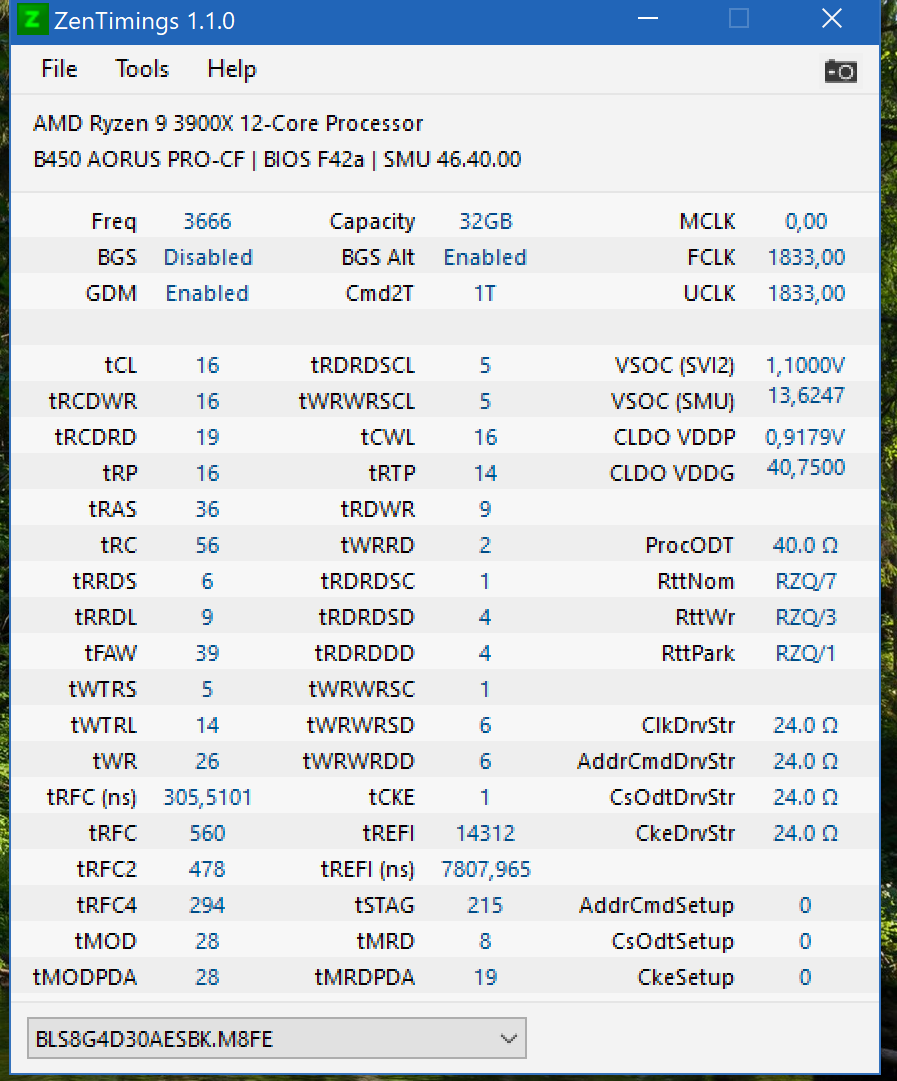 Ty jak to e-die to trdrd sd dd i twrwr sd dd to ty daj odpowiednio na 55 i 77 bo z tego co pamiętam to edie nie przepadały jak jest tu zbyt nisko. Dodatkowo daj 1.1 v na SOC 0.9v na cldo vddp i 0.95v cldo-vddg ccd i IO. trrds 6 trrdl 8 twtrs 4 twtrl daj na 14 a twr 26 tcwl daj na 16 nie każde e-die lubią tutaj niżej z GD. Vram na 1.4v powinno wstać. Alfy daj na 16-(19R-16W)-16-34