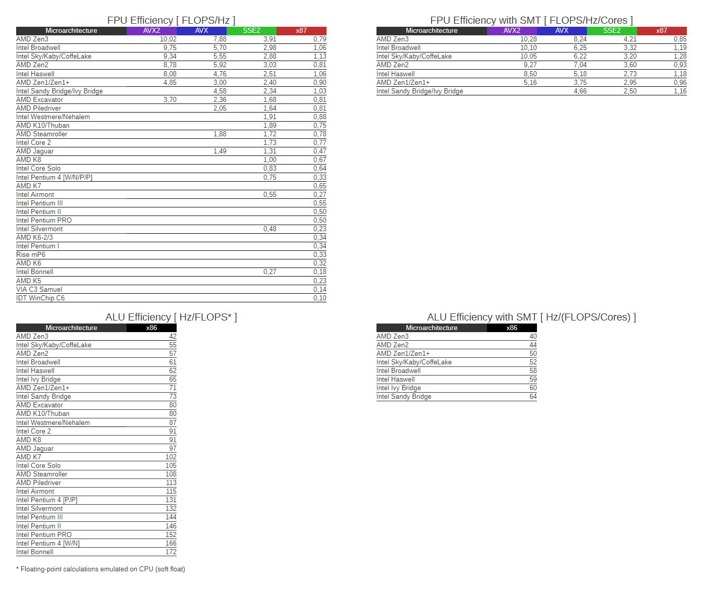 Właśnie dla tego napisałem że teoretyczne IPC mikroarchitektury rdzenia x86 a osiągana praktyyczna wydajność to dwie różne pary kaloszy.
