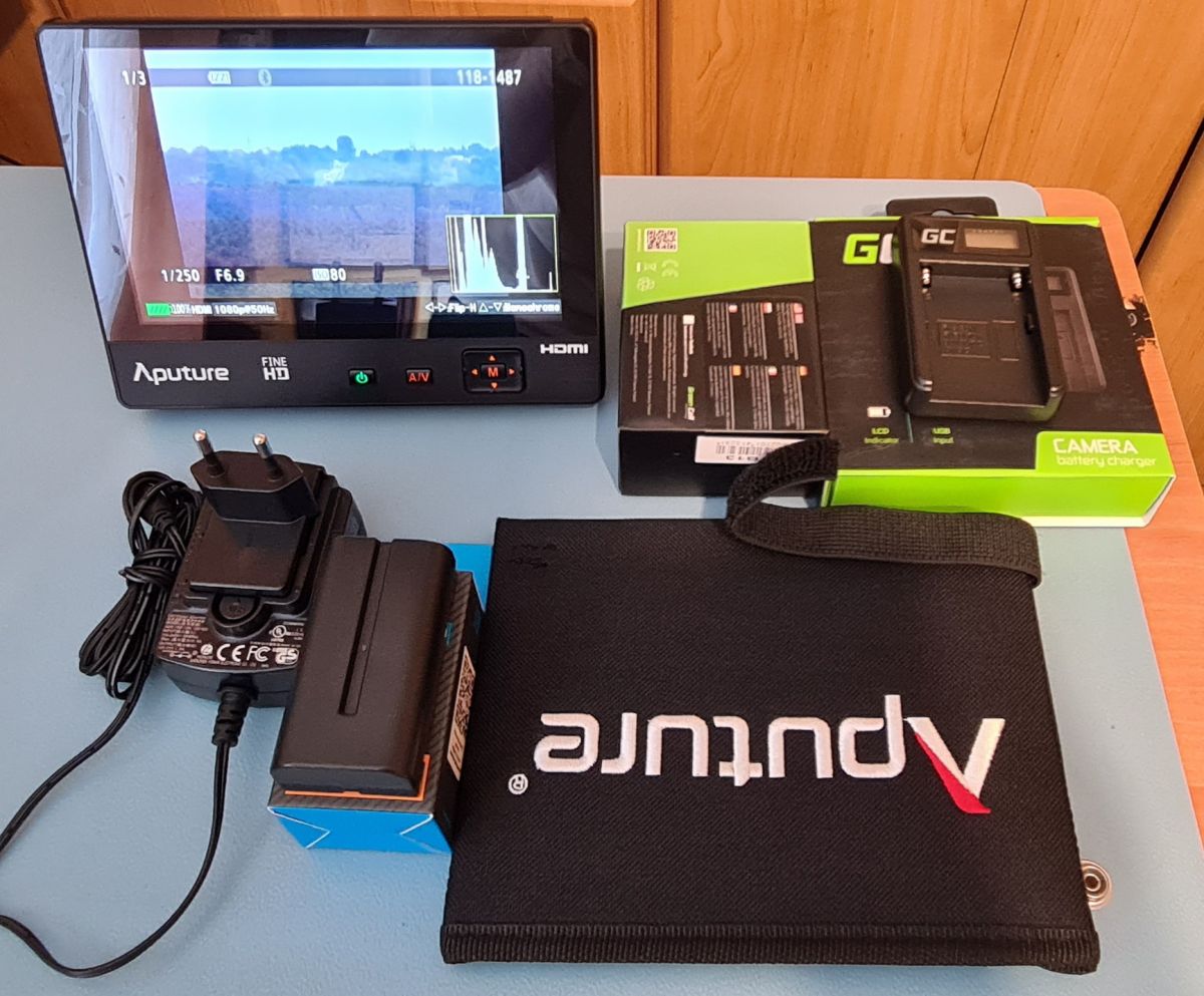 MONITOR Podglądowy APUTURE VS-1 LTPS 1920x1200 + akumulatory, zasilacz UPS, klawiatura Logitech k810