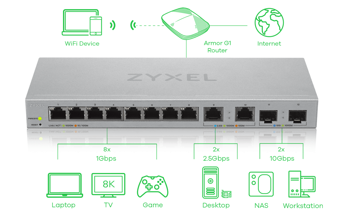Switch Zyxel XGS1210-12 Zarządzany 8x1GB 2x 2,5 Gbe 2x 10 Gbe SFP+