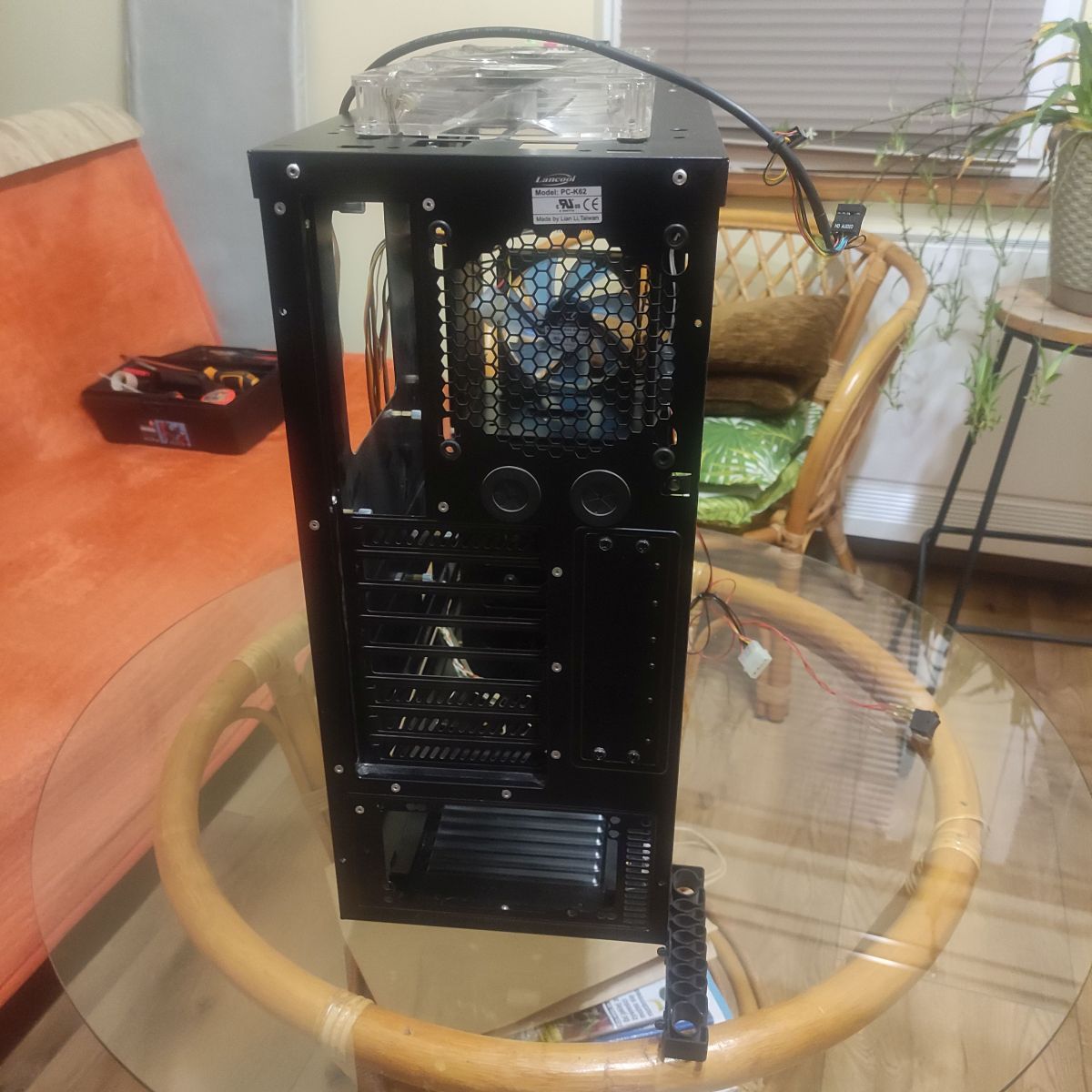 Znowu przełożyłem PC do nowej obudowy :-). Z Phanteksa 500 do Lian Li Lancool III. Tym razem motywacją była chęć/potrzeba dołożenia radiatora pod 4090. A ograniczeniem konieczność zachowania podobnej podstawy jak Phanteks, więc skrzynki typu O11 odpadały. W Phanteksie miałem 360+360+120, w Lancoolu III, jak sama nazwa wskazuje :-)zmieściło się 3x360. Dało się to dość wygodnie poukładać. Tylko kombo D5+150 weszło na styk ale na szczęście Lancool ma na topie wygodny otwór do napełniania układu.