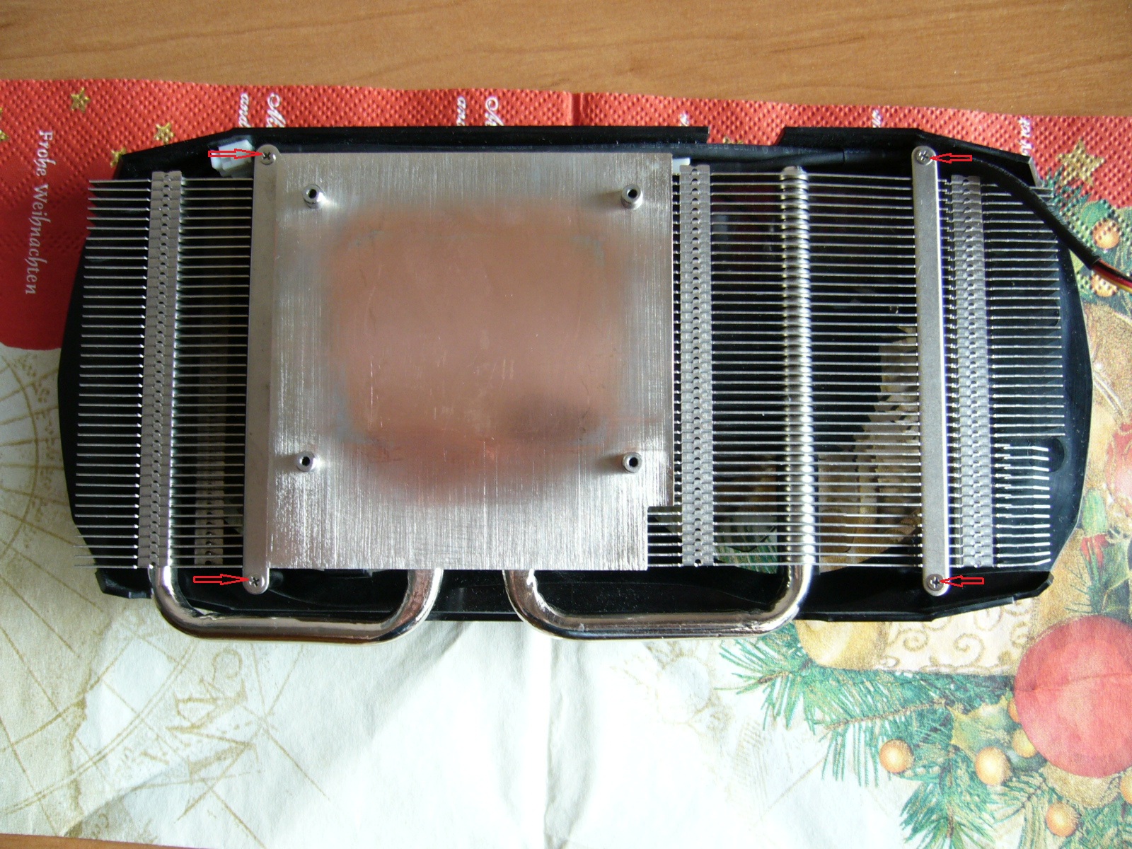 Zeby zdjac maskownice z gtx 460 gigabyte windforce, trzeba zdemontowac caly radiator (az 4 srubki).