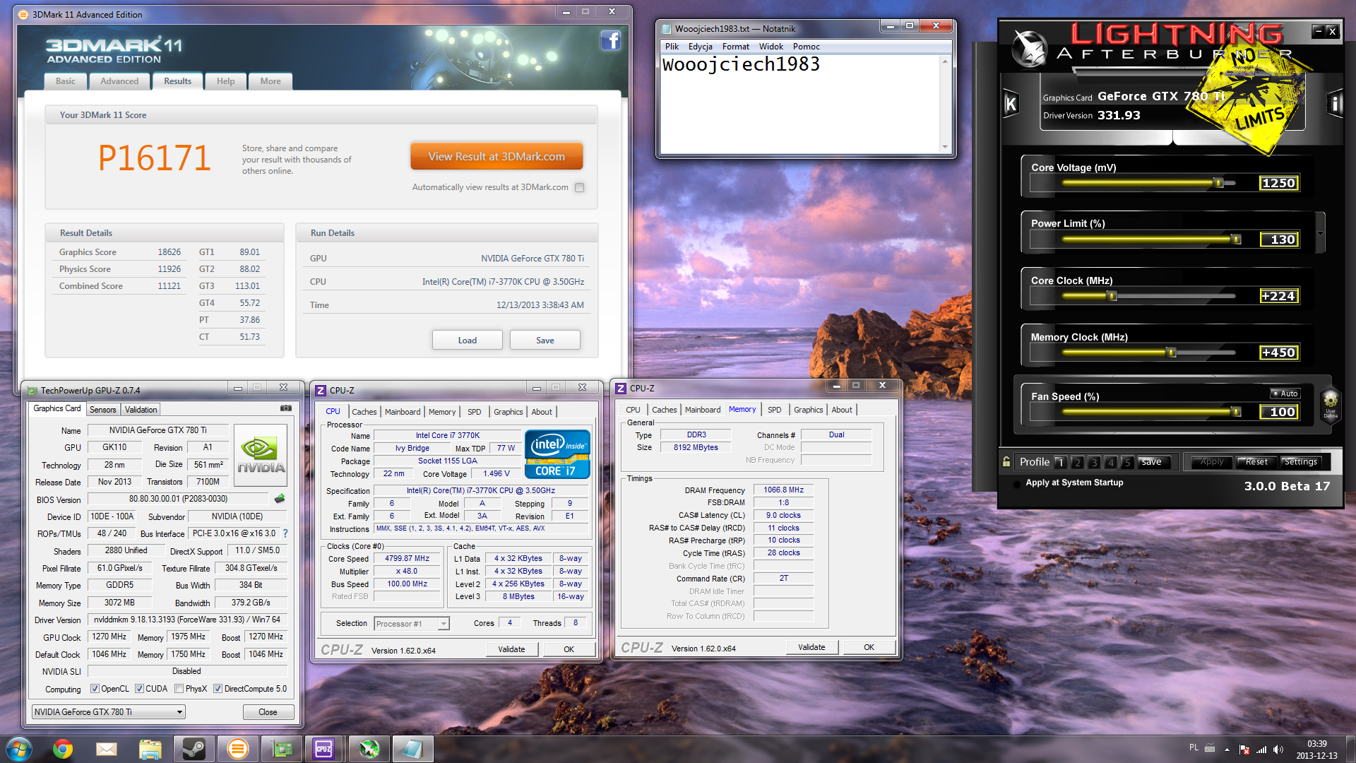 [*] Wooojciech1983 - 16.171 pkt. - GTX 780Ti @ 1270 @ 7900 - i7 3770K @ 4.8 GHz Screen Wynik