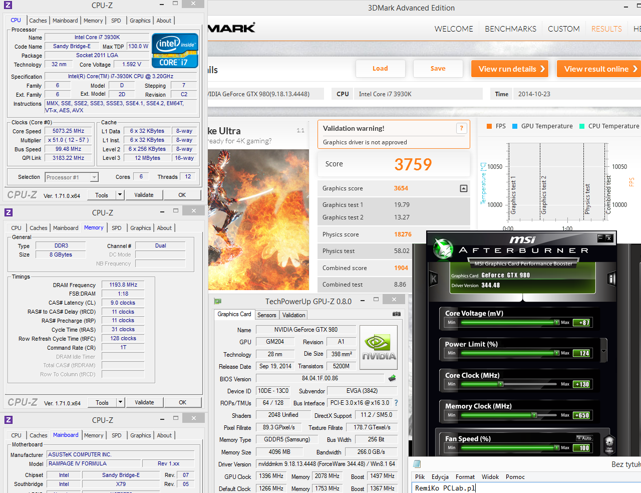 18. RemiKo - 3.759 pkt. - GTX 980 @ 1572 @ 2078 - i7 3930K @ 5.07 GHz Screen Wynik