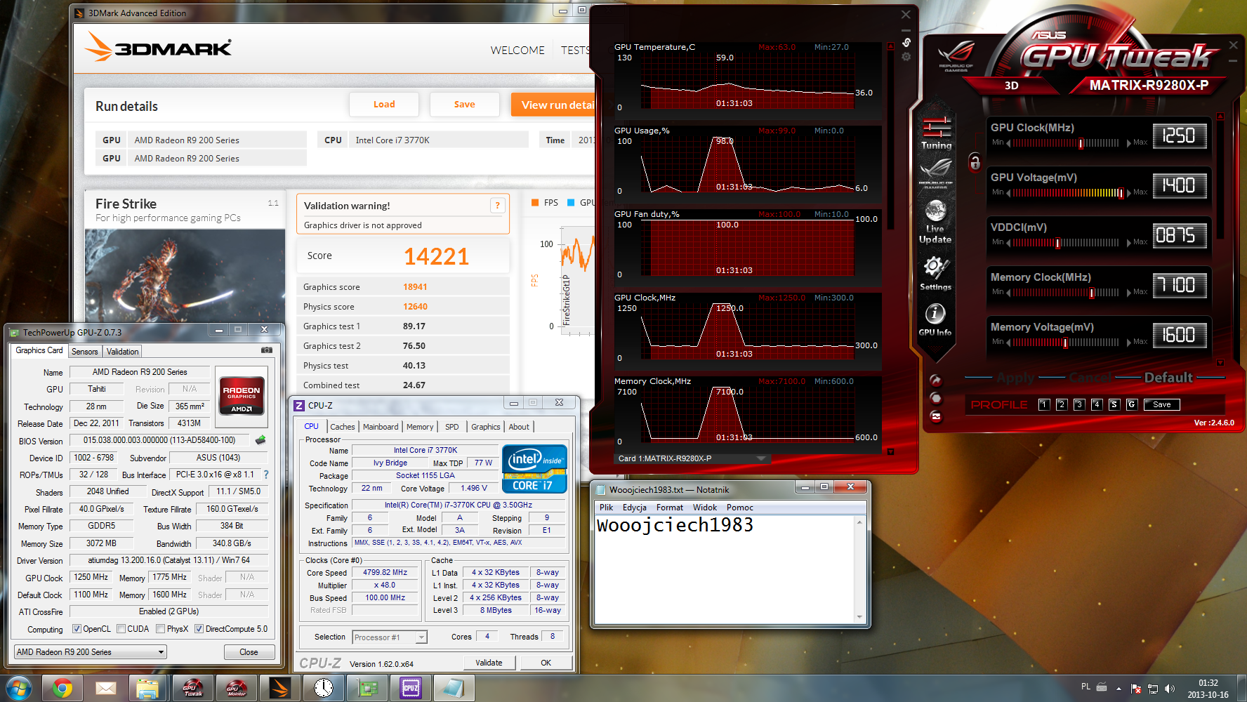 [*] Wooojciech1983 - 14.221 pkt. - RADEON R9 280X CF @ 1250 @ 7100 - i7 3770K @ 4.8 GHz Screen Wynik