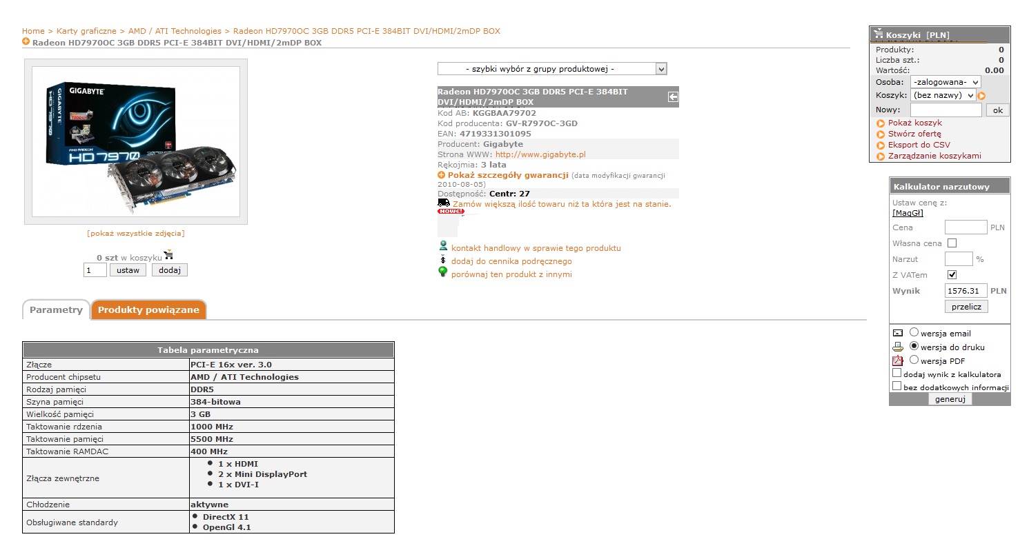 AMD 7970 - Radeon HD7970OC 3GB DDR5 PCI-E 384BIT DVI/HDMI/2mDP BOX - 1576 zł + dostawa - tutaj nie wykonuję OC.