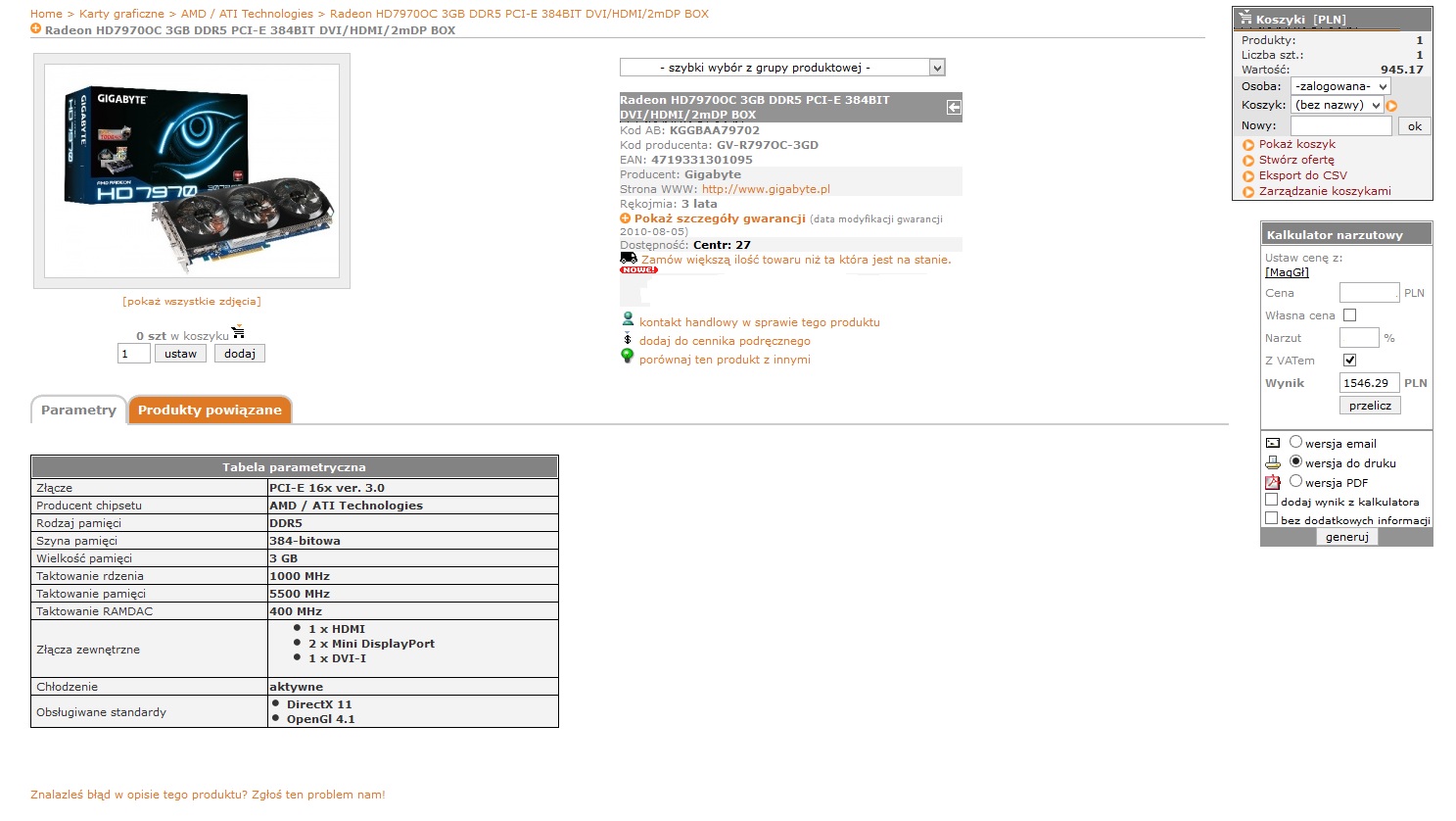 Nic do Twojego sklepu nie mam ale chciałbym zaznaczyć, że karta którą oferujesz to jest wersja OC od Gigabyte i na rdzeniu ma 1000MHz