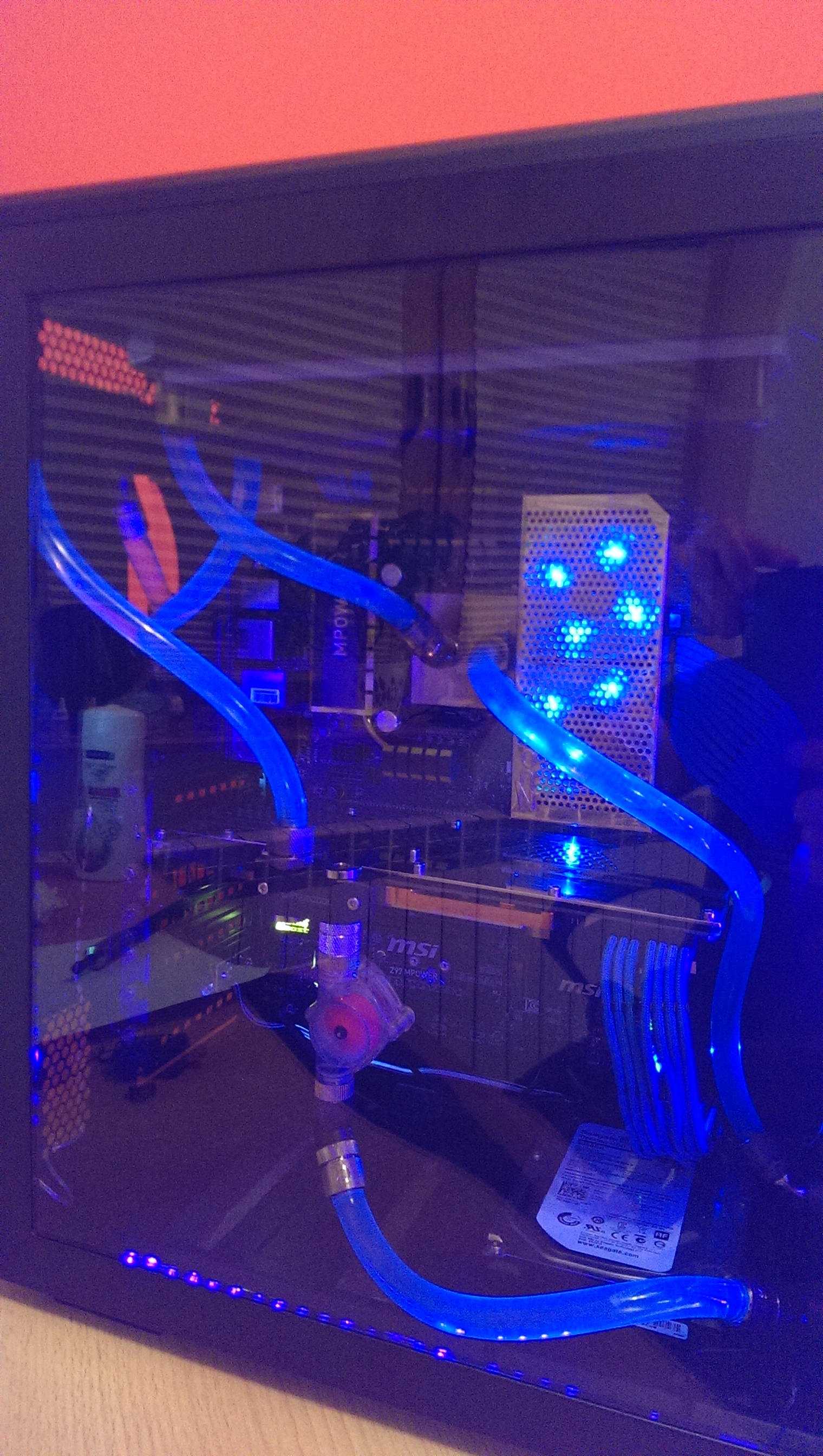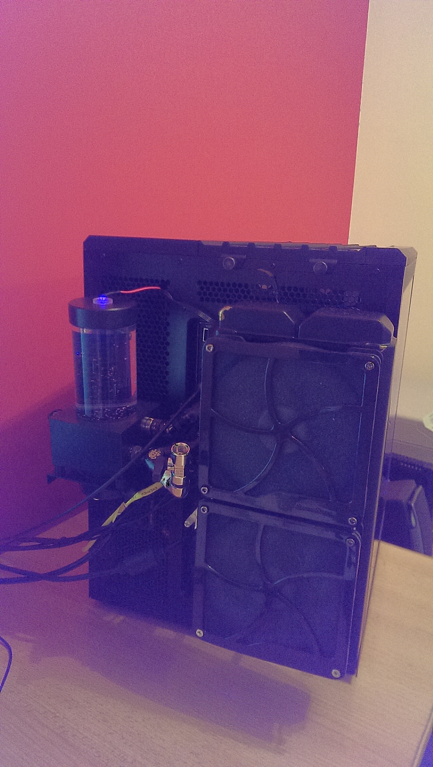 Teraz mam 3 chłodnice, 320/30mm front, 240/45mm top i 280/45mm która była na topie dałem na plecy a rez z tyłu a wcześniej był w środku a pompa w drugiej komorze teraz zmieniłem na większy zesparowany z pompą d5 i się mi już nie mieścił a nie chciało mi się kombinować.