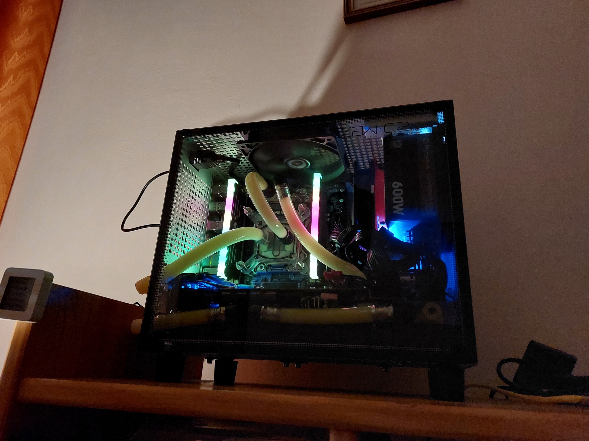 Wstępnie władowałem tam chłodzenie powietrzem, ale temperatury dochodziły do 80* na karcie, mówię, musi być z powrotem wodne, na dole zmieści się chłodnica 240, ale pomyślałem, że dam na zewnątrz grubą 120 i to był strzał w dziesiątkę, temperatury mam teraz lepsze niż wcześniej na podwójnej 360, który była w obudowie