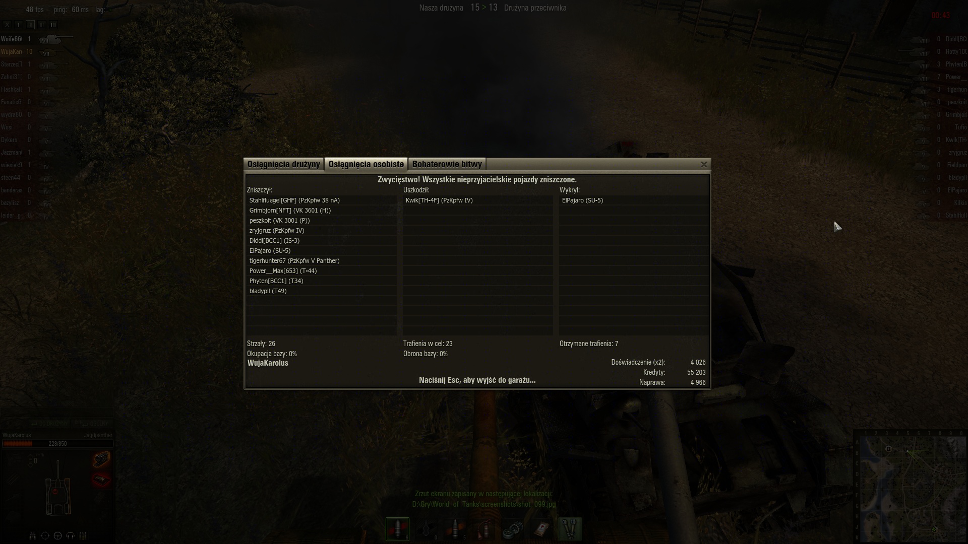 z tym ST1 to tylko przyklad, bo to mnie juz wpienilo, wczesniej mialem tak samo z Pantera2 i waleniem w KV4. Pokazuje ze trafienie, bo swieci sie czolg, typ mi gada ze "ale mu dowalilismy", a HP jak bylo tak jest. To nie tylko na ruskich, ale i na leszczach typu T50, amx sie czesto trafia